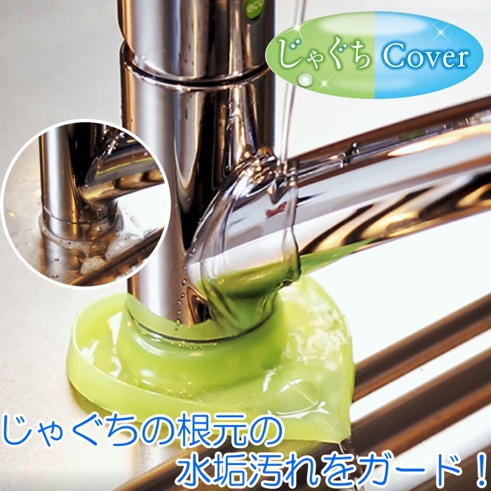 「じゃぐちカバー」なら、蛇口の根元に取りつけることで、滴る水滴や洗剤をキャッチしてそのままシンクに流すので、水垢汚れの発生を軽減します!