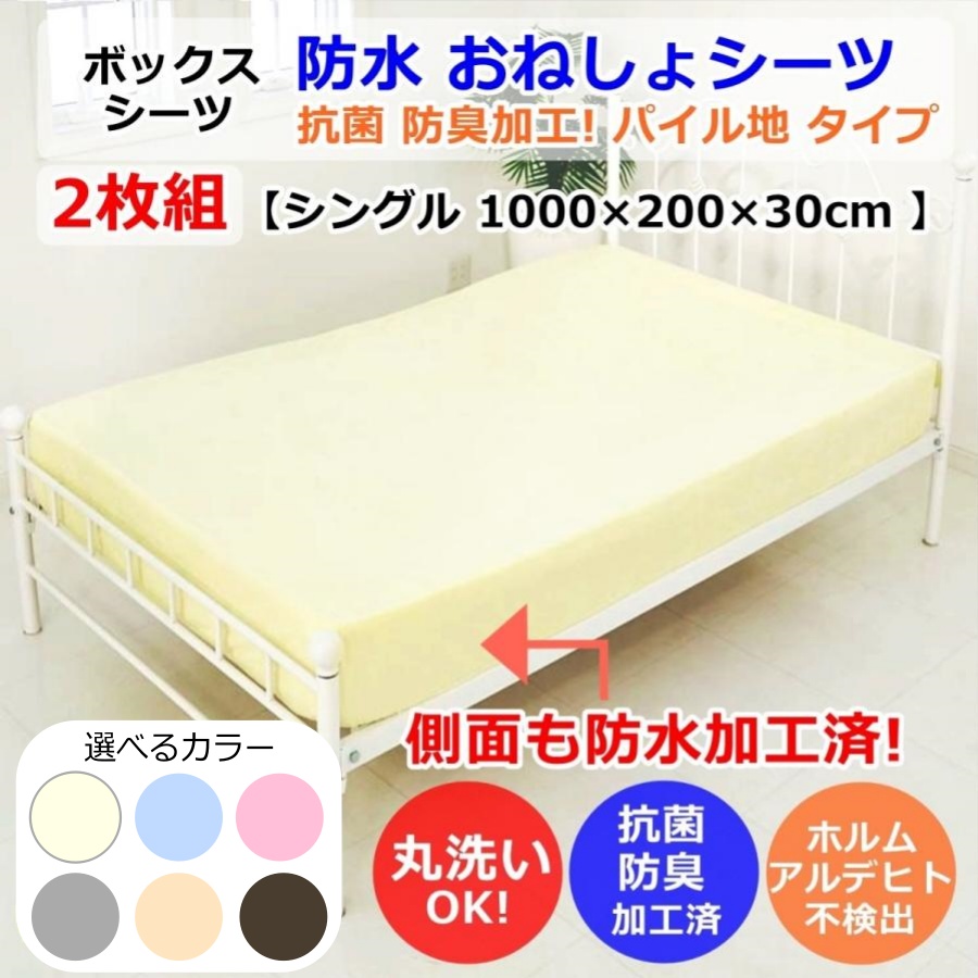 防水シーツ ボックスシーツ (抗菌 防臭) おねしょシーツ (シングル 2枚組) パイル地 ベッド マットレス用 BOXシーツ ボックスタイプ
