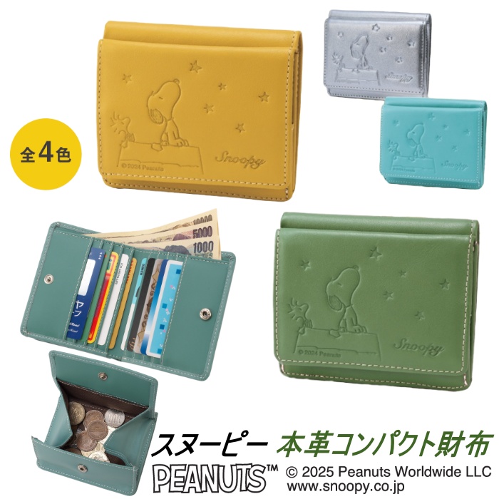 スヌーピー 本革 コンパクト財布 SNP025