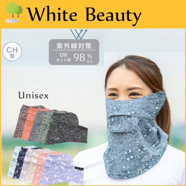 White Beauty ホワイトビューティー テニス フェイスカバーCH型 フェイスマスク UVカット フローラル柄 ペイズリー柄 日焼け対策 スポーツマスク (R-T)
