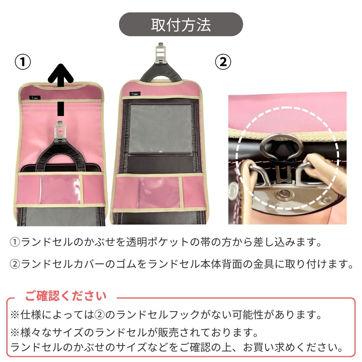 | お手入れ方法 | 本製品は洗濯・漂白できません。 漂白剤、ベンジン、溶剤は使用しないでください。 お手入れは中性洗剤を含ませたタオル等で拭き取ってください。 ・時々ランドセルカバーを外してランドセルをお手入れしてください。 |