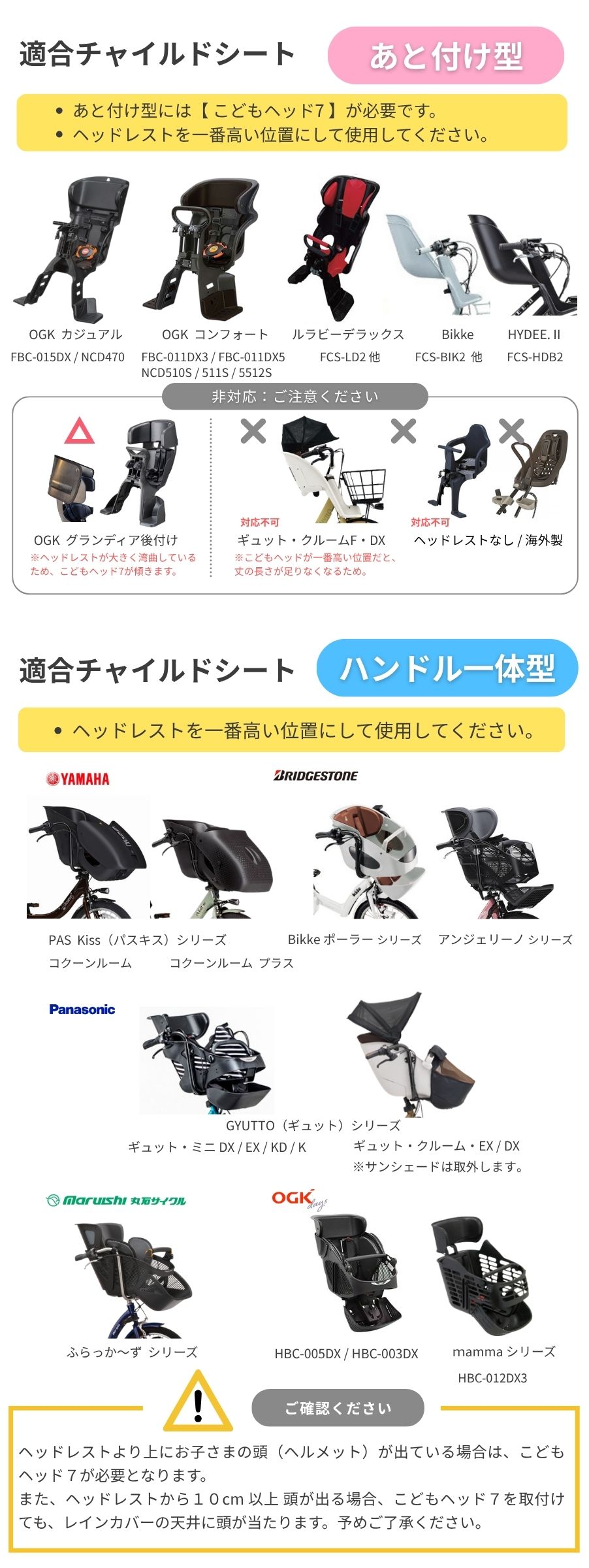 ※背もたれのないチャイルドシート、ヘッドレストのないシートには対応しておりません