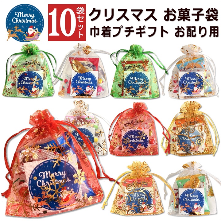 クリスマス お菓子 詰め合わせ 10袋 巾着 大量 個包装 2025 小分け 子供 かわいい プチギフト セット イベント 飾り オーガンジー キッズ スナック ばらまき