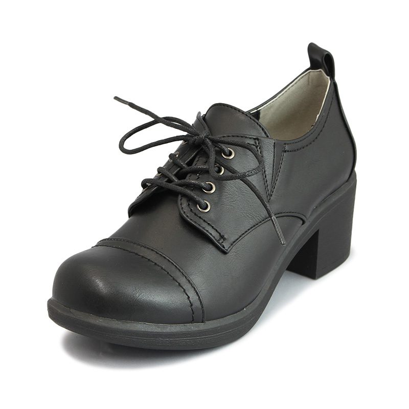 【継続品】by バイ あしながおじさん 8980437 BL ブラック レースアップシューズ ラウンドトゥ 6cmヒール 合成皮革
