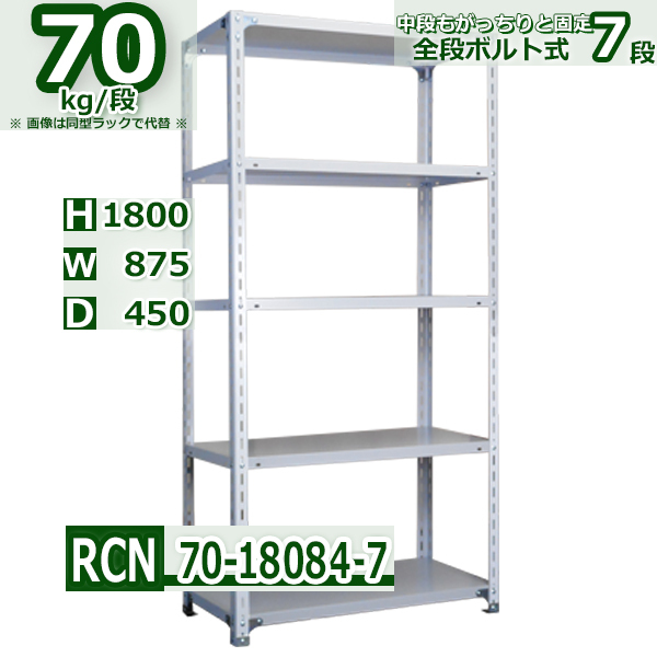 スチールラック 幅87×奥行45×高さ180cm 7段 耐荷重70kg/段 全段ボルト式 軽量棚 W87×D45×H180cmスチール棚 業務用 収納棚 整理棚 ラック