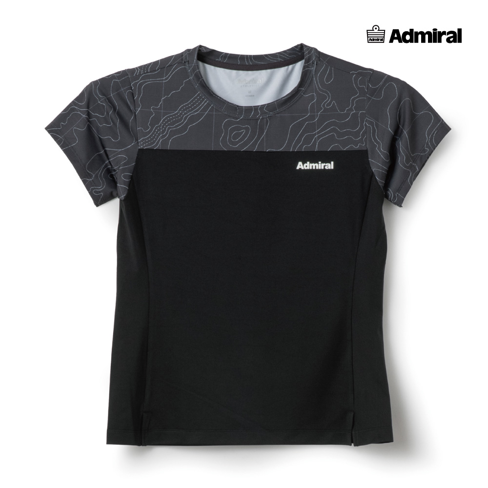 ADMIRAL レディース スリットヘムグラフィックTEE ATLA602-10 2026SS ブラック 吸水速乾 UVカット ストレッチ アドミラル