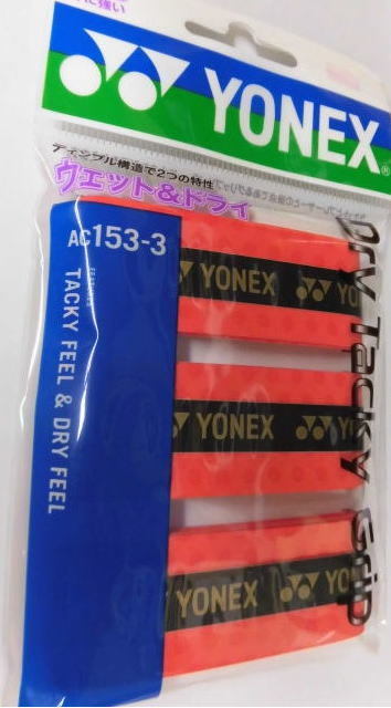 ヨネックス 【国内正規品】AC153-3 ドライタッキーグリップ [3本入] ブライトレッド(212)【*期間限定・ヤフー価格*】
