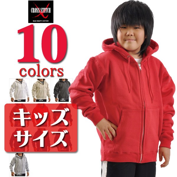 パーカー 無地 キッズ KIDS 子ども用 子供服 ジュニア 暖かい 裏起毛 厚手 12.4オンス クロスステッチ ジップ ZIP 防寒 冬服 CS2221 MAX HEAVY COTTON