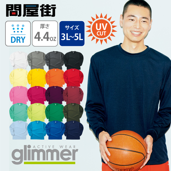 最安値に挑戦 ロンT 無地 グリマー GLIMMER ドライロングスリーブ 無地Tシャツ メンズ ロング Tシャツ L3-5L クールビズ