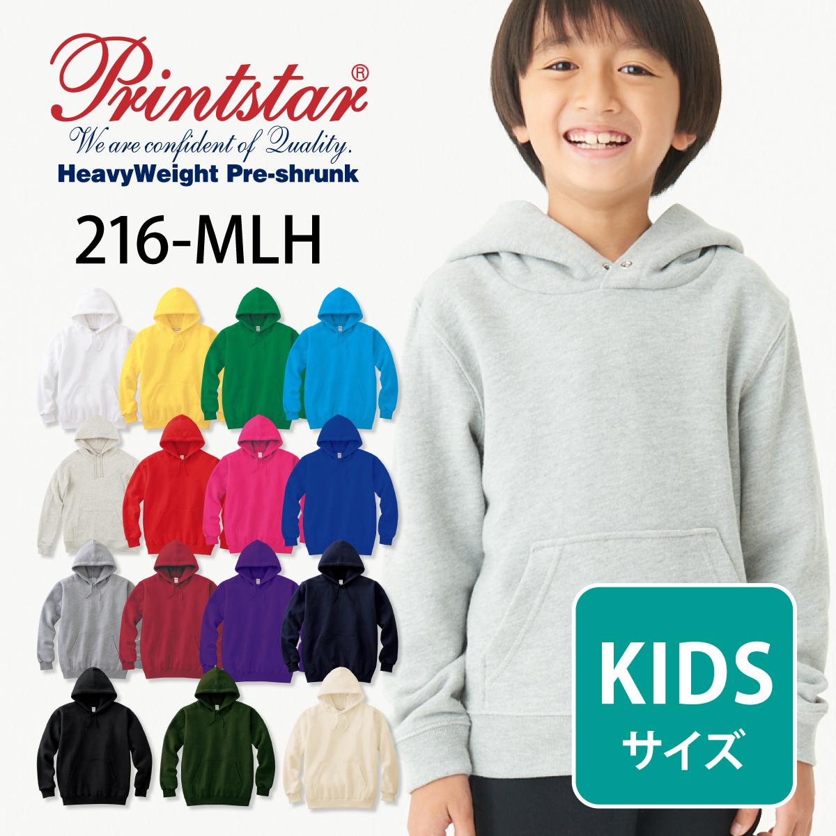 パーカー 無地 キッズ KIDS 子ども用 子供服 ジュニア 服 厚手 8.4オンス プルオーバー ライトパーカー パーカ かぶり 裏毛 パイル 216-MLH