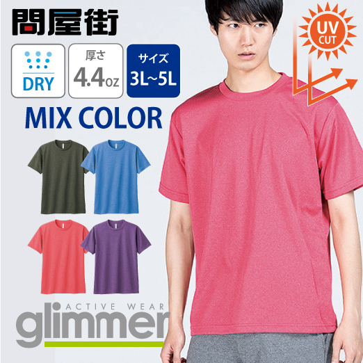 最安値に挑戦 グリマー GLIMMER ドライ半袖Tシャツ 大きいサイズ クールビズ ミックスカラー メール便