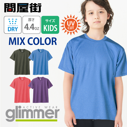 Tシャツ 無地 キッズ KIDS 子ども用 子供服 ジュニア 速乾 ドライ サラサラ グリマー 激安服 4.4オンス 薄手 暑さ対策 300-ACT ミックスカラー 運動会 体操着