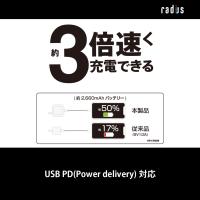 ラディウス radius RK-UPD18 充電 PD3.0対応 USB-C ACアダプター 1.2m ケーブル直結型 高速充電