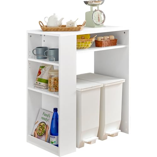萩原 レンジ台 キッチンラック ゴミ箱上 ラック オープンラック 幅 71 奥行 42 高さ90.5 天板 耐荷重 20kg ホワイト 組立品