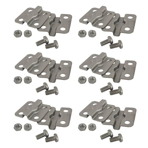 ・[セット内容]金具6セット(12個)、M5x10なべねじ(12本)、M5六角ナット(12個)。[金具サイズ]縦:35mm。横:35mm。奥行き:6.5mm。穴径:5.5mm。くぼみの幅:5.7mm。板厚:1.0mm。[金具材質]ステンレスSUS304。