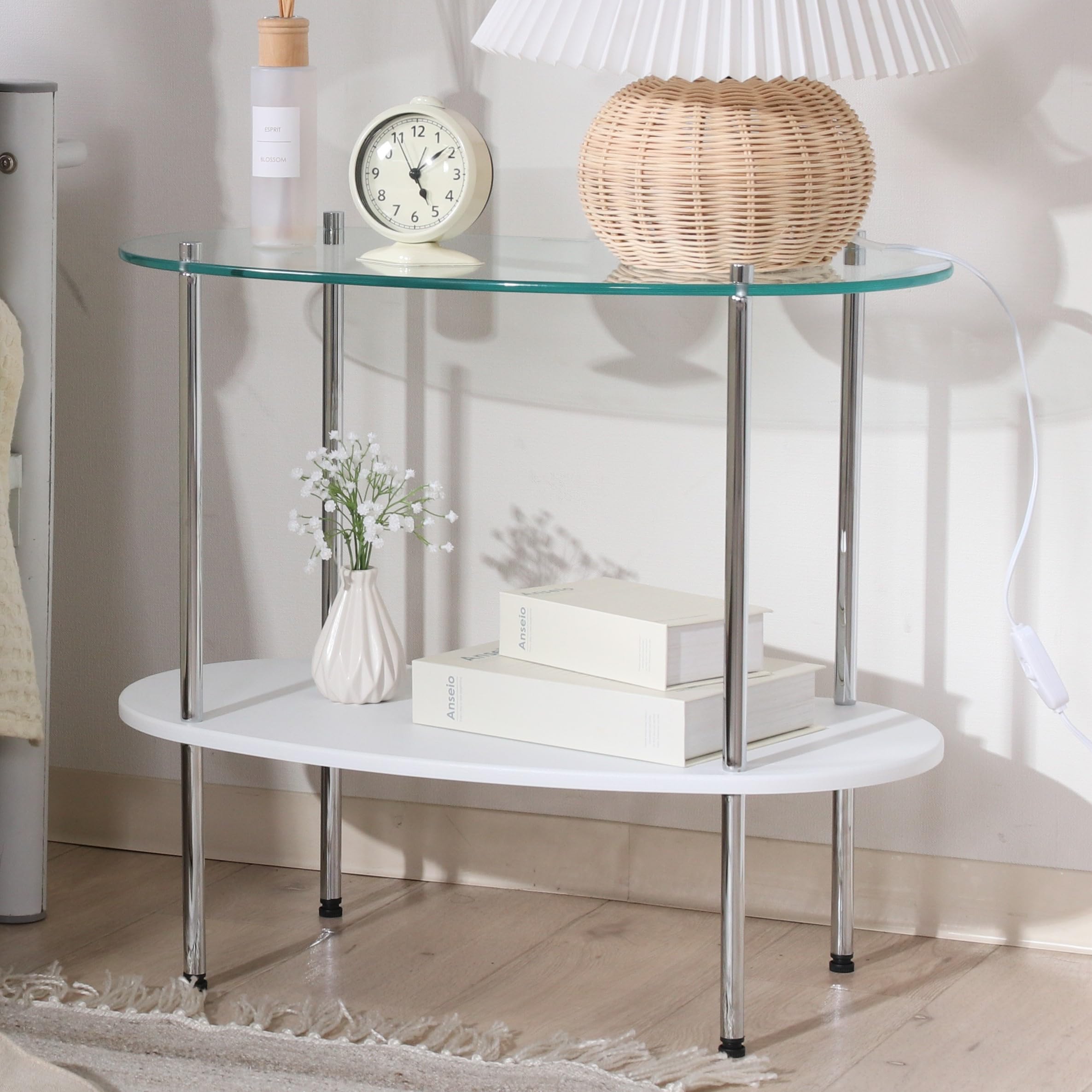 不二貿易 サイドテーブル 幅60×奥行32×高さ53cm クリア×ホワイト 強化ガラス 韓国インテリア 2段仕様 Chamill 41315