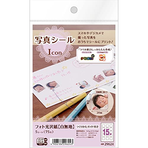 エーワン 写真シール フォト光沢紙 15面 5シート 29624