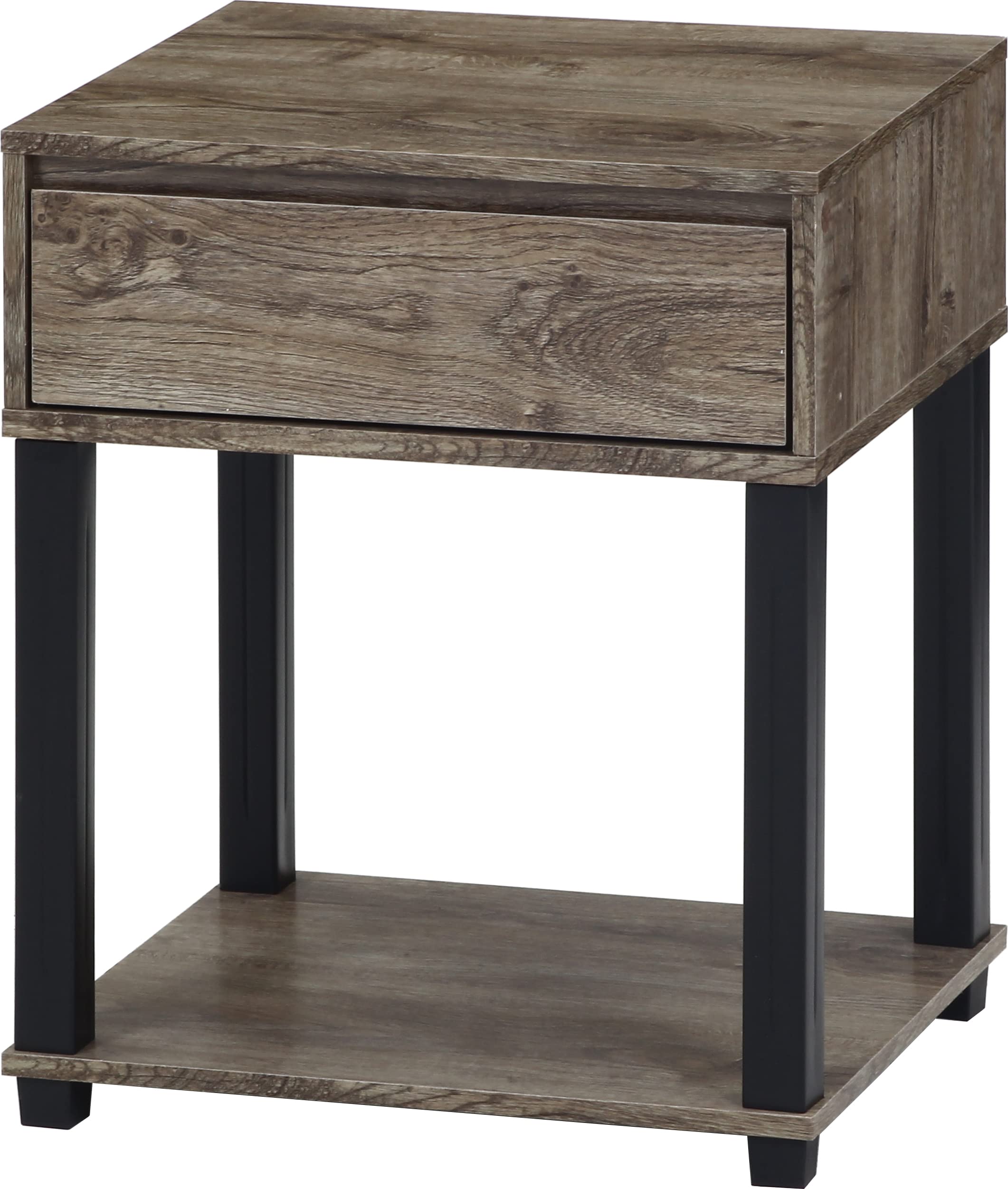 不二貿易 テーブル 幅45×奥行39.5×高さ55.1cm ナチュラル/ブラック サイドテーブル 木目調 引き出し付き FIT 70695