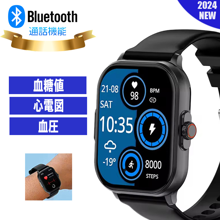 スマートウォッチ 血糖値 心電図 ECG 血圧 心拍数 睡眠 日本製センサー Android iPhone対応 2.01インチ 2024年モデル