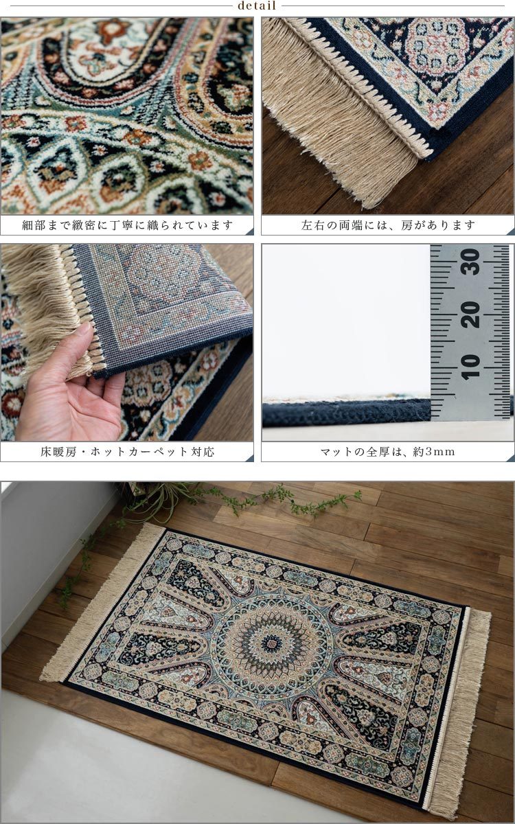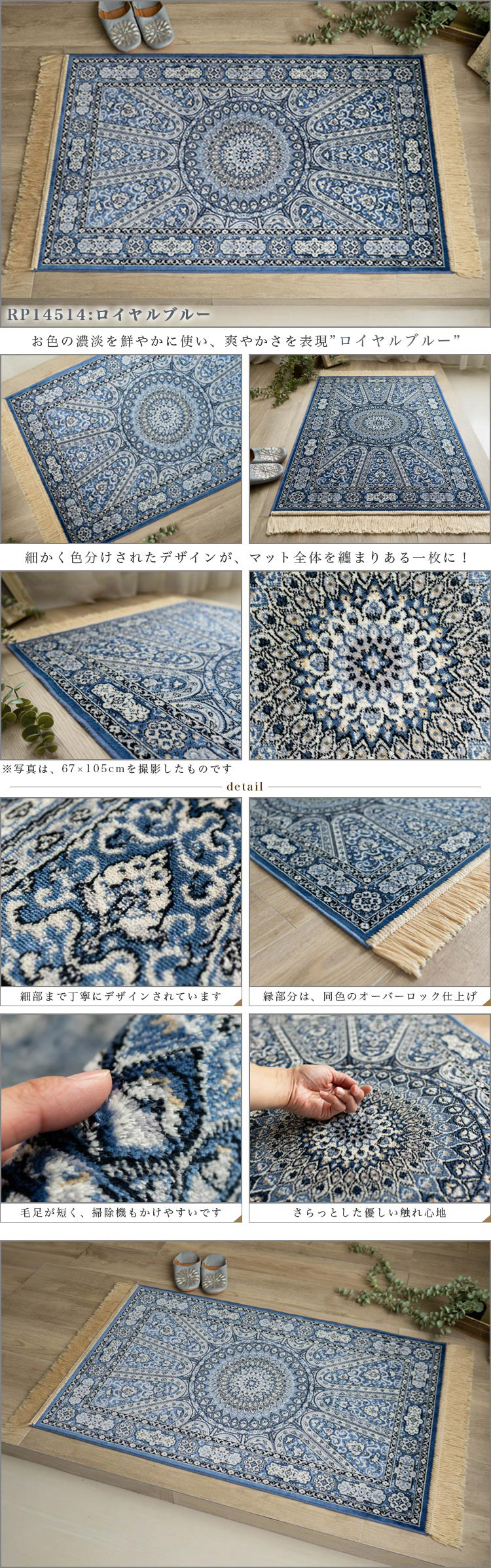 本場ベルギーより直輸入 サイズは60x85cm玄関マット"選べる6アイテム"玄関マット! (ペルシャ・シリーズ) ペルシャ絨毯のような豪華なデザインが魅力の "ラゴーレ社"より直輸入 "モケット 玄関マット" 当店オリジナル!さらに直輸入のため、 お求めやすい価格です! サイズ 60×85 cm 玄関マット (両端の房は、サイズに含んでおりません) ![]() ![]() "本場ベルギー製 ラゴーレ社の玄関マット" ペルシャ絨毯のような豪華な デザインと、高級感ある色使いの 『ロイヤルパレス・シリーズ』 カーペットの本場ベルギーで名高い "ラゴーレ社"の熟練された技術と、 ヨーロッパの芸術性高い彩色を組み合わせ 織られた玄関マットです。 その中でも当店のオリジナル商品として、 ご準備した6アイテムです。 ラゴーレ社より、直輸入することで お求めやすい価格でご準備できました。 豊富なデザイン、カラーからお気に入りの 1枚をお選びください。 ロイヤルパレス14514 ![]() "ペルシャ絨毯のような緻密なデザイン" ペルシャ絨毯のような豪華さと、 見る人を魅了する鮮やかさが魅力です! 今回のロイヤルパレスシリーズ(RP)の6アイテムは、 イスラム寺院モスクの天井を見上げた時の 装飾をイメージした"メダリオンデザイン"や、 たくさんの絨毯の柄を組み合わせ1枚に纏めた "ヘシティデザイン"の玄関マットです。 さらに、1枚の玄関マットで5色以上の色糸を使い 織り込まれており、6アイテム全てが繊細で 高級感ある仕上がりをお楽しみいただけます。 ![]() "妥協なく厳選された素材を使用" 素材には厳選した"レーヨンと綿"を使用 (レーヨン60%、綿40%) 素材のレーヨンは、アートシルクとも 呼ばれており、まるでシルク素材のような 光沢感と風合いを出しております。 また、綿素材を組み合わせる事で、日常使いも しやすく肌触りもさらっとした高級感ある 仕上がりとなっております。 また、厚みも約3mmの厚みとなっており、 お部屋の移動などもしやすく、扱いやすい 重さのマットとなっております。 ![]() ![]() 本物のペルシャ絨毯のような 鮮やかで深みのある色合いのマット ![]() ![]() ![]() ![]() ![]() ![]() ![]() ロイヤルパレス14651 ![]() ![]() 足元から伝わる豪華な クラシックデザイン ![]() ![]() ![]() 6アイテムから、あなたの お気に入りの1枚見つかりましたか? 本場ベルギーにある"ラゴーレ社"より 直輸入。当店オリジナルの モケット織り玄関マット いつもの玄関をペルシャ絨毯で伝統ある クラシック柄と、さらっとした肌触りを 組み合わせた高級感ある"ロイヤルパレス"の 玄関マットで、ワンランク上の玄関に 変えてみませんか? (上記サイズは房を含んでおりません。房込みですと、約60×100cmとなります。) ※表示サイズより数cmの誤差がある場合がございますので、ご了承ください。 ※当店は通常、おもに同業他社に卸販売を行っております。 在庫は豊富にご用意しておりますが、突然の品切れの場合もございますのでその際はメールにてご連絡させていただきます。 |