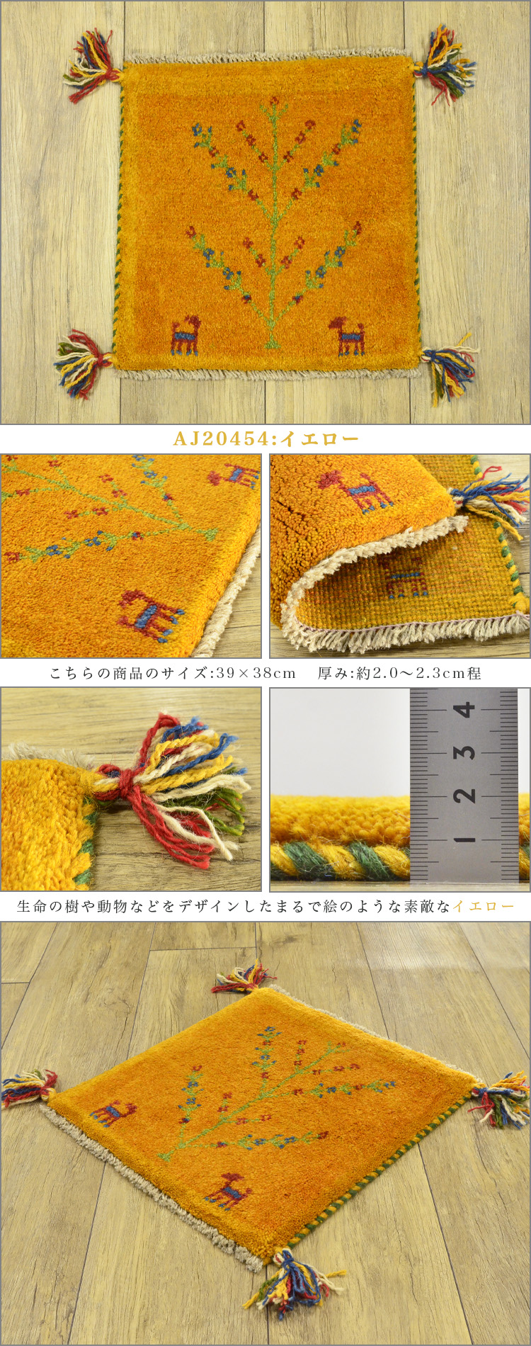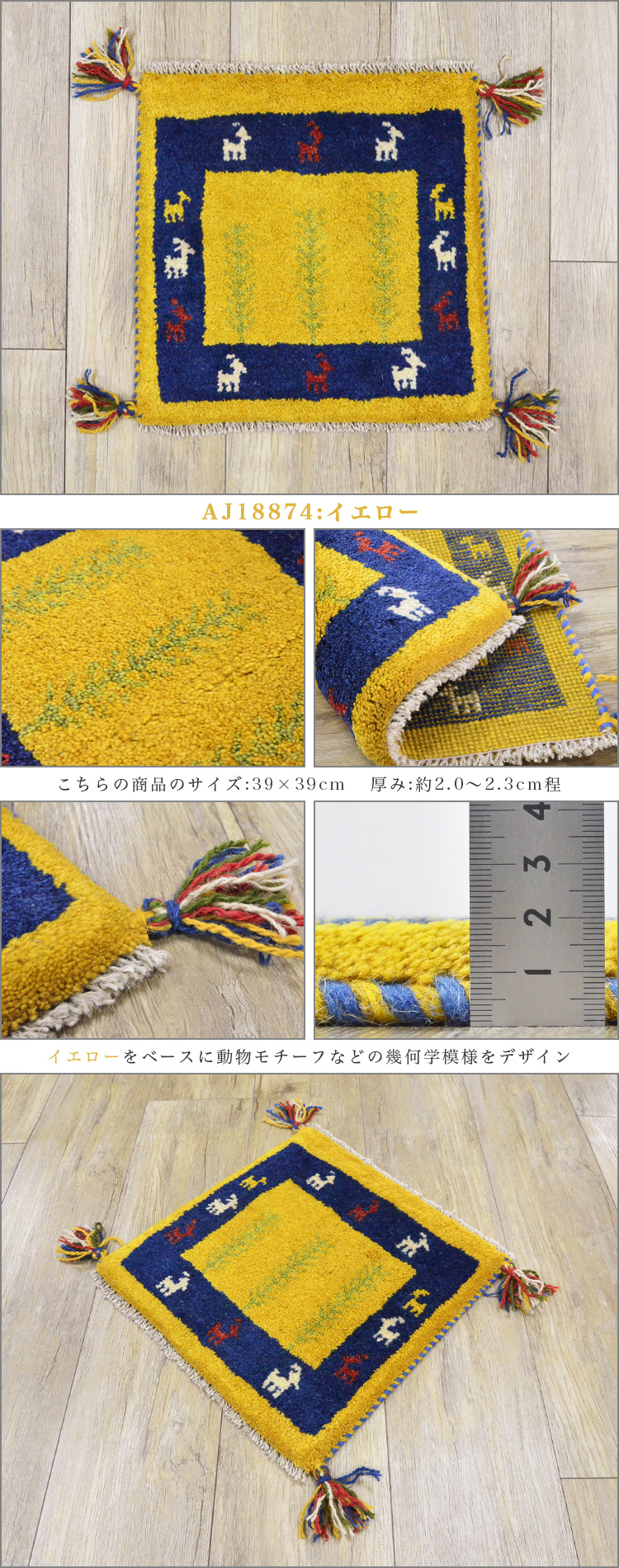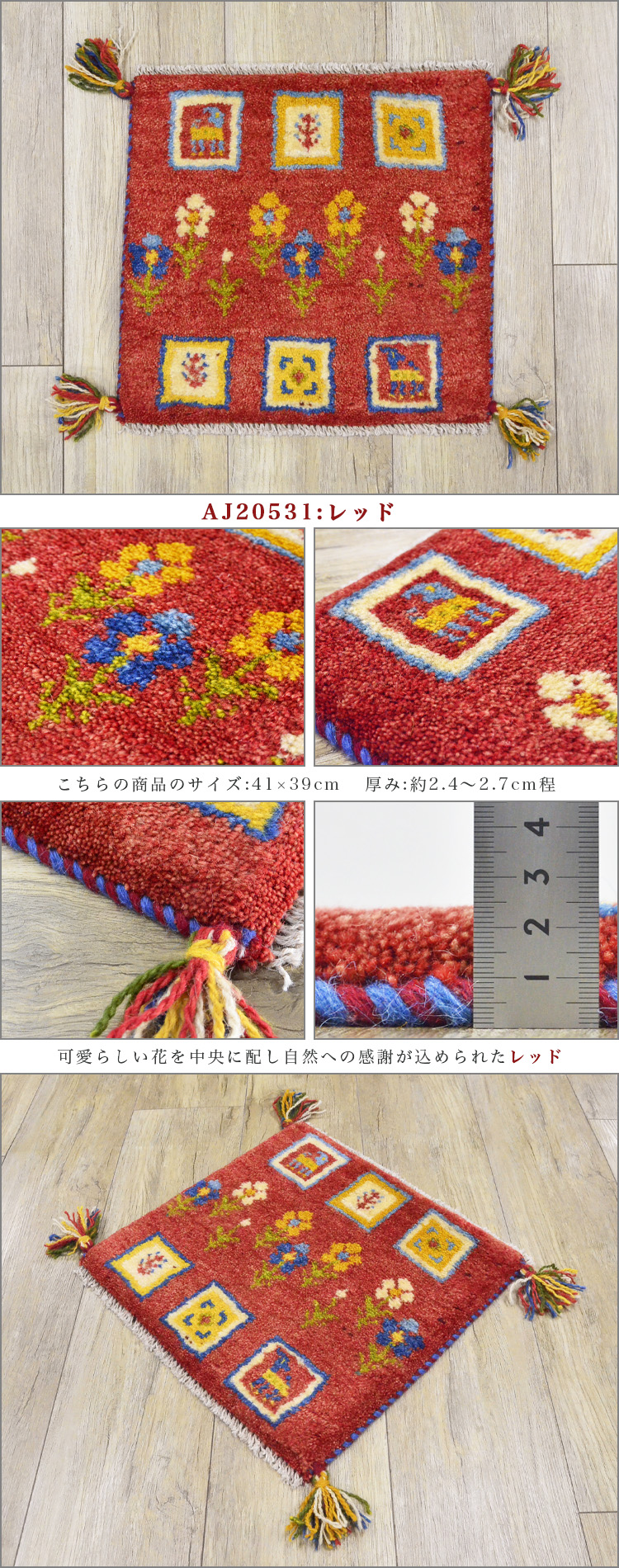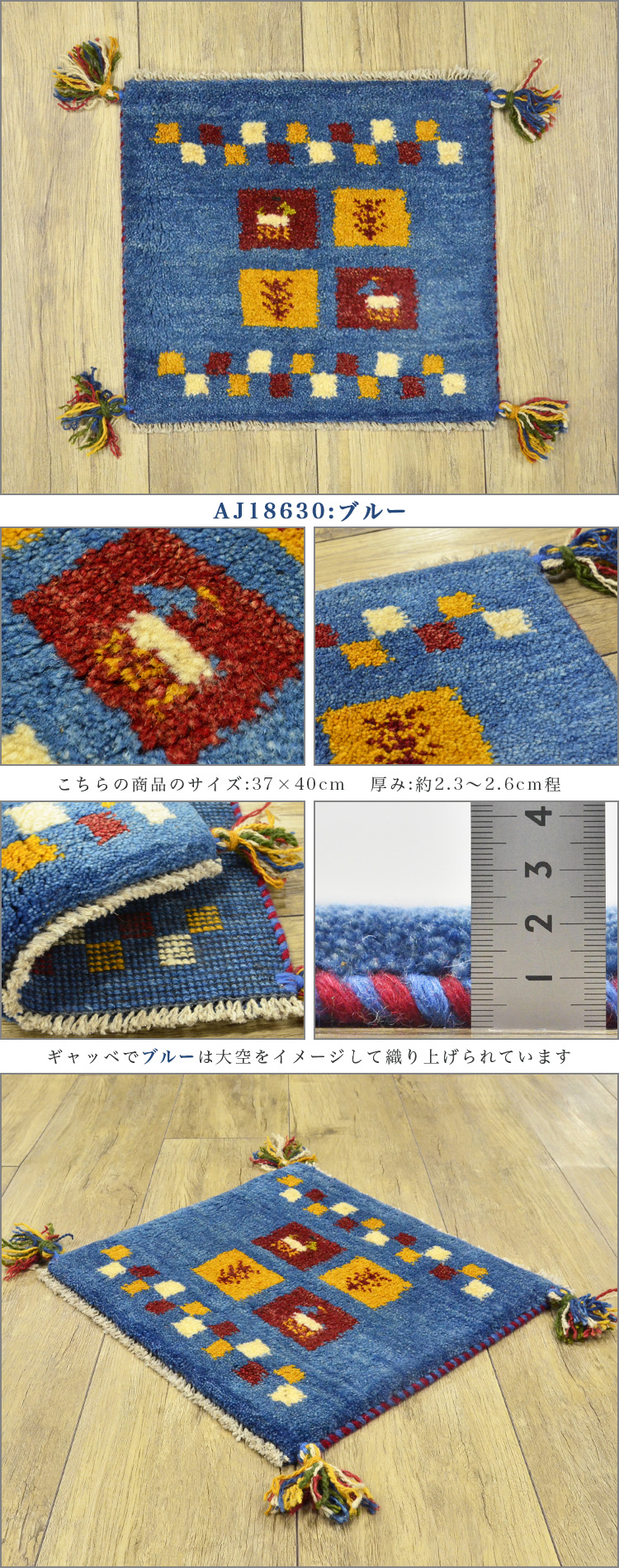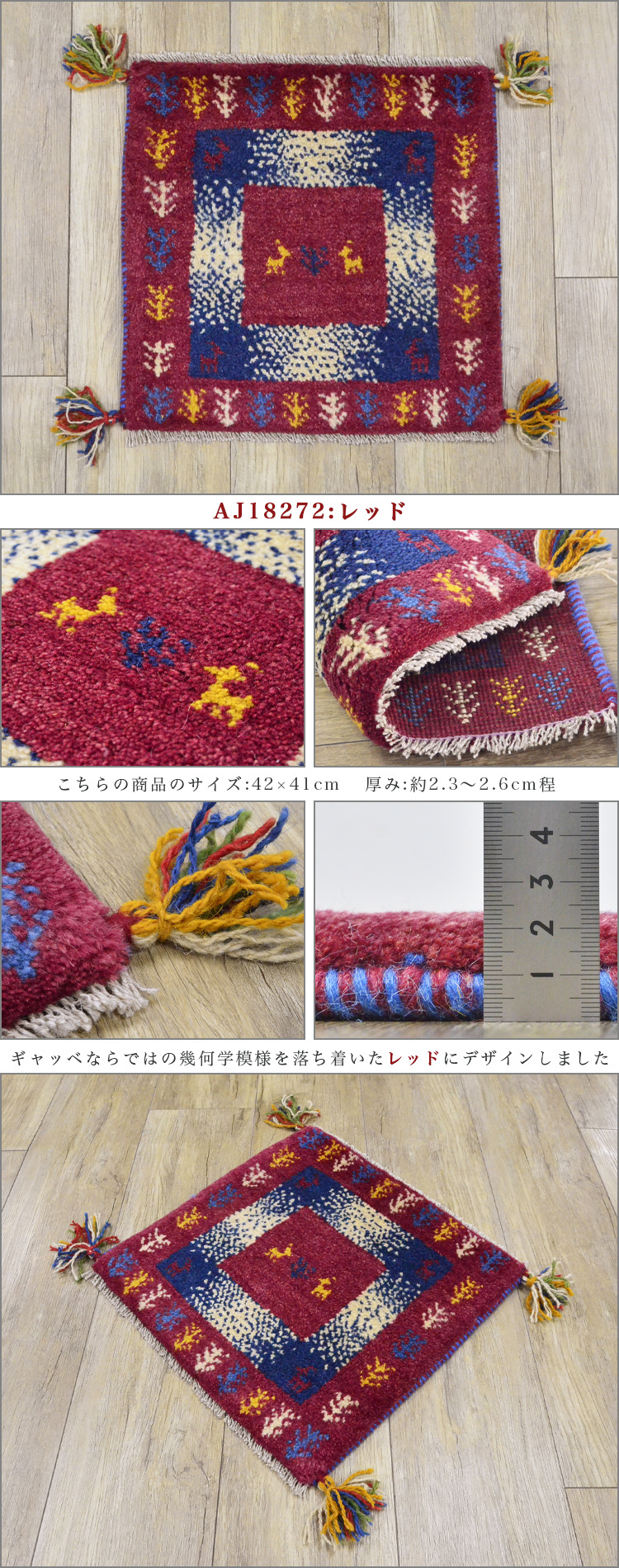 1枚だけの手織りギャッベサイズ 40×40 cm(座布団サイズ)