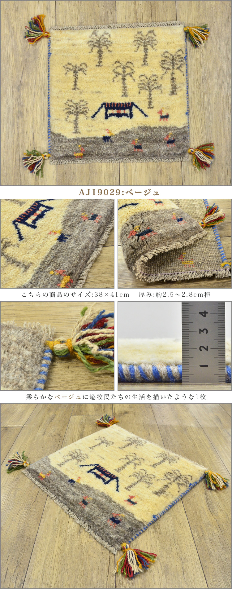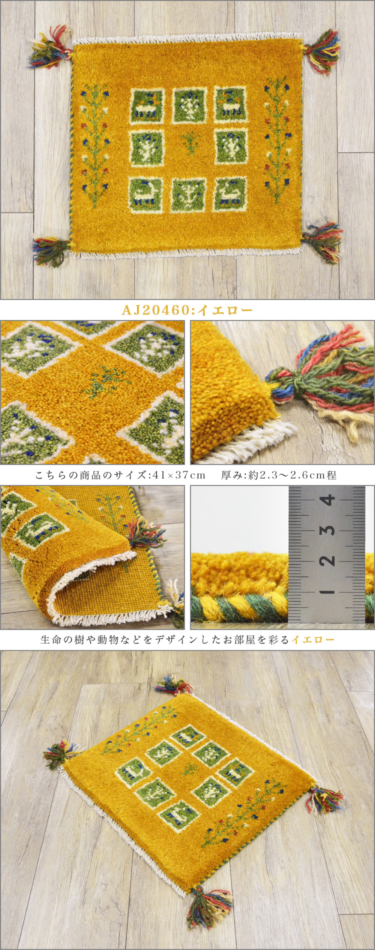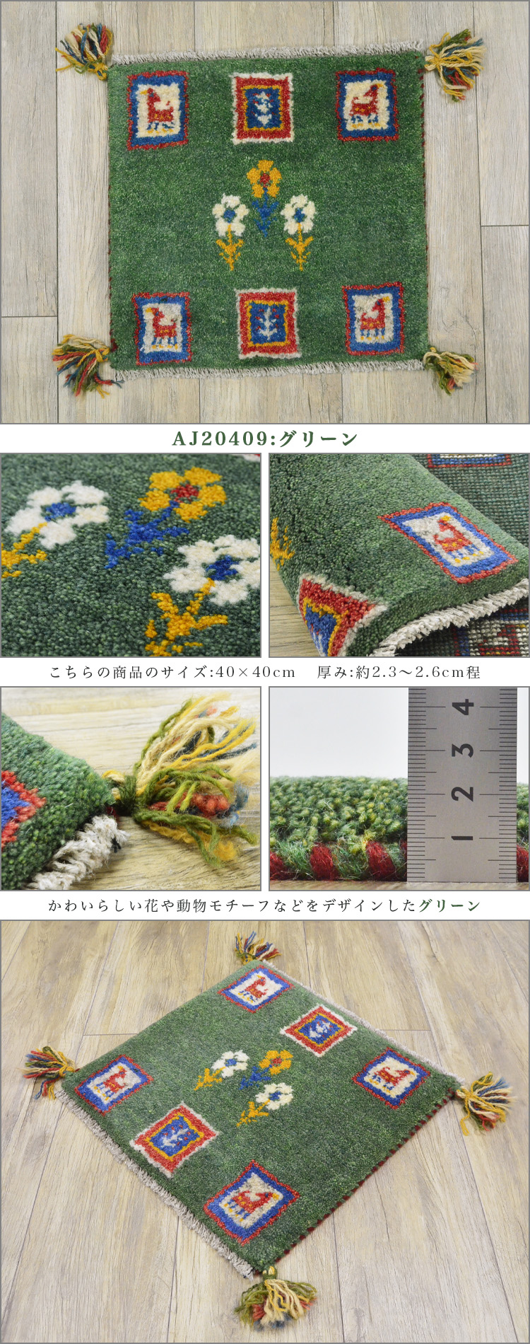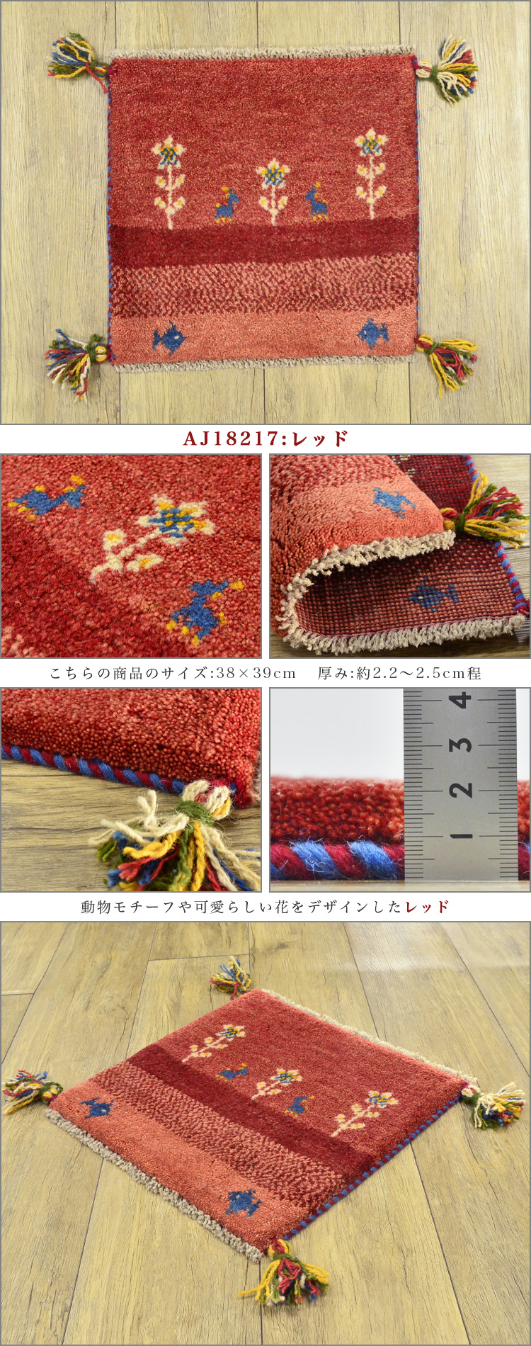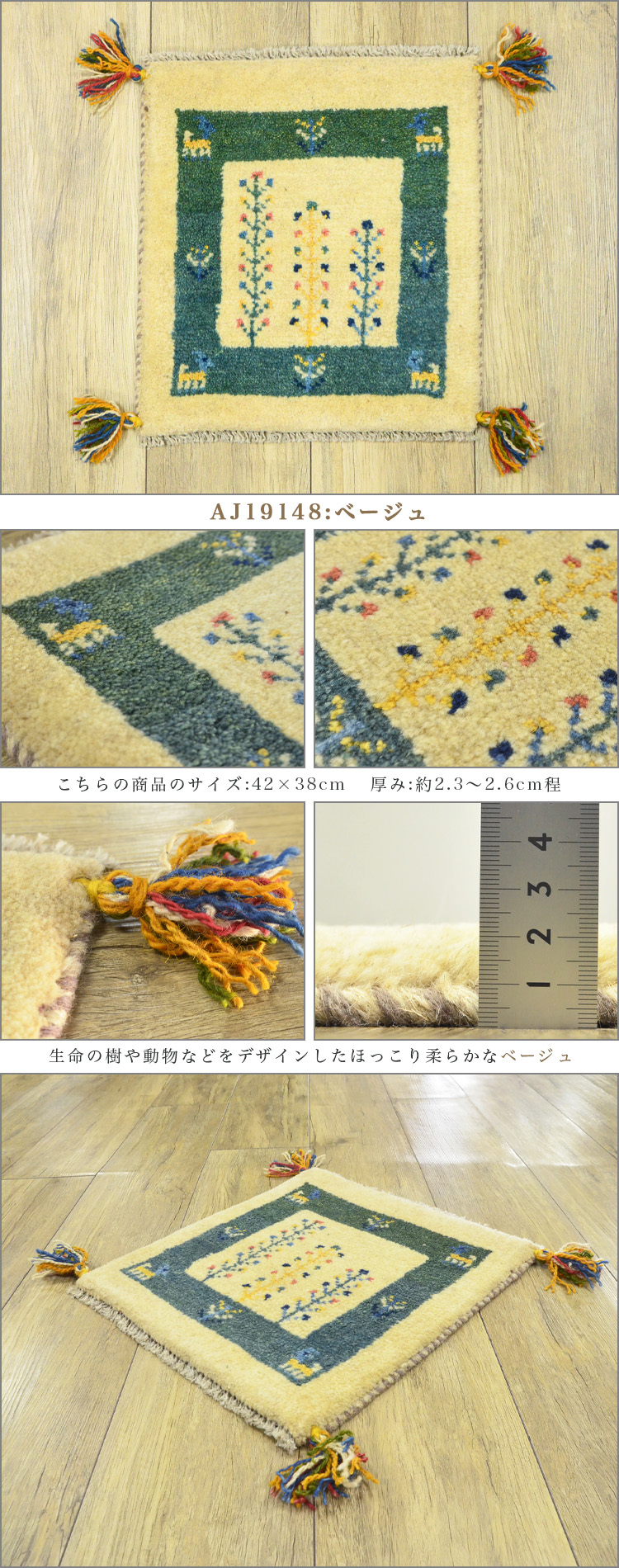 1枚だけの手織りギャッベサイズ 40×40 cm(座布団サイズ)