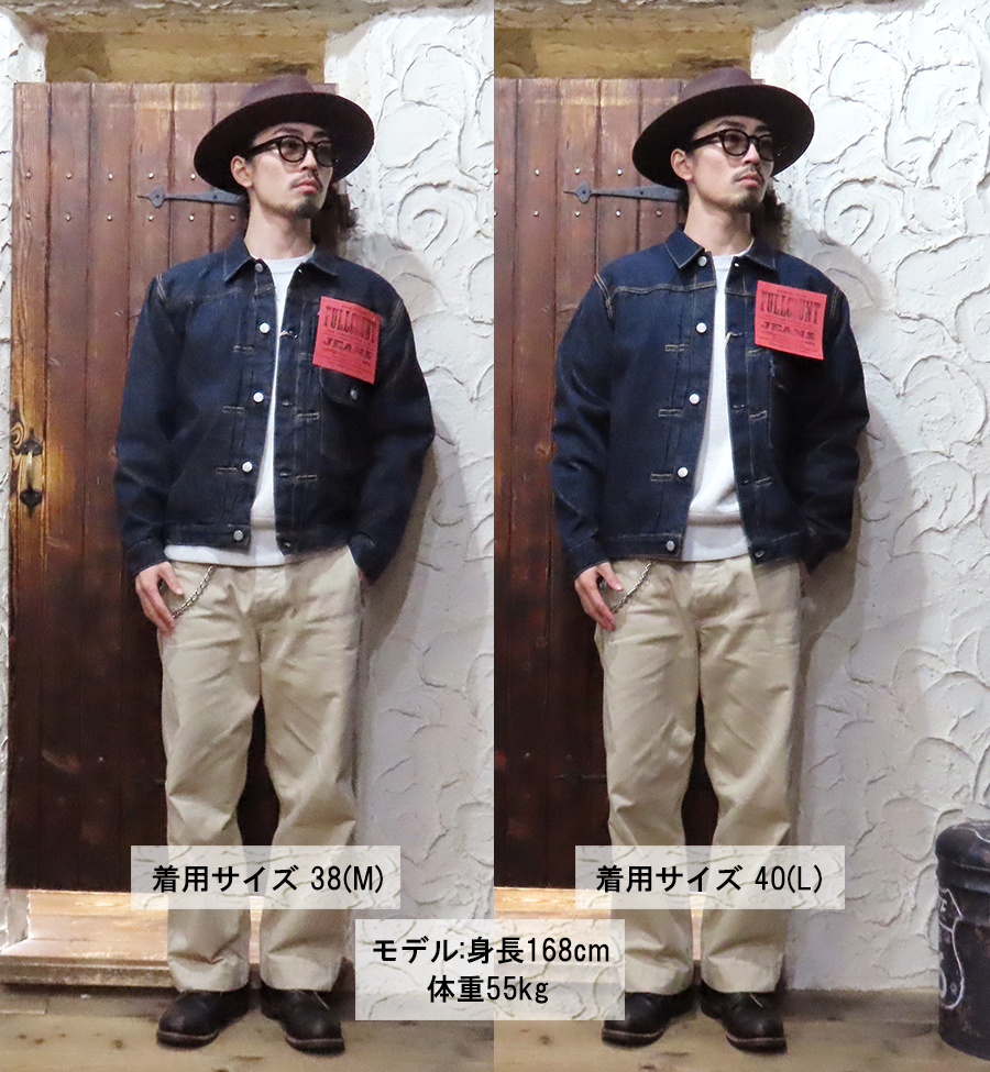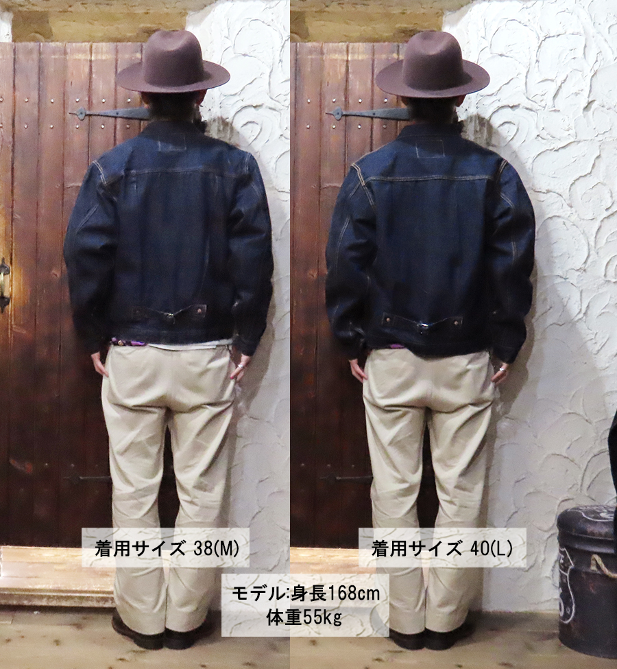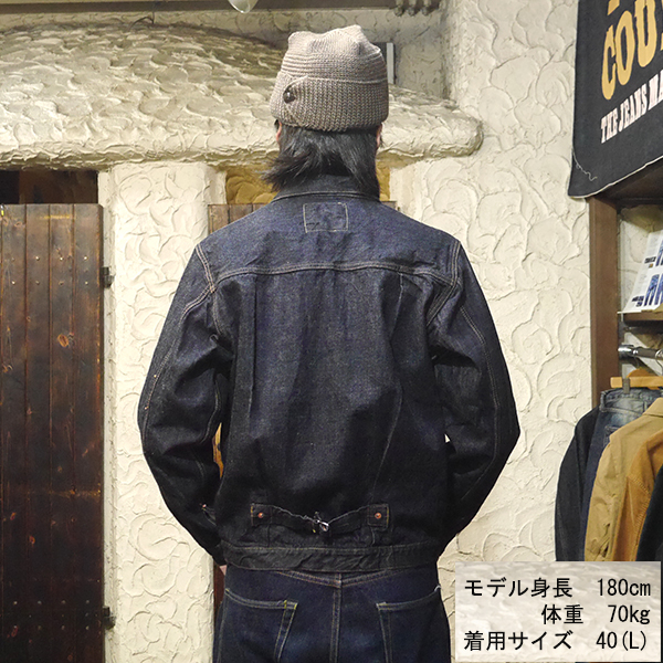 | 素材 | 13.7oz デニム ジンバブエコットン 100% One Wash 日本製 | | サイズ(cm) 実寸 | | 肩幅 | 着丈 | 身幅 | 袖丈 | | 36(S) | 41 | 59 | 49 | 59 | | 38(M) | 43 | 61 | 51 | 60 | | 40(L) | 45 | 63 | 53 | 61 | | 42(XL) | 47 | 65 | 55 | 62 | | 44(XXL) | 49 | 69 | 60 | 65 | | 46(XXXL) | 54 | 69 | 64 | 65 | ※当製品は着心地を追求する為、 旧式の織機によって作られた生機(未防縮の生地)と呼ばれるデニム地を使用しており、 綿が本来持っている伸縮性、弾力性、風合いを実現しています。 その為、布地の特性上、生産時の湿度や気温等によって 数センチの差が生じる場合がございます。 また、同商品・同サイズの場合も数センチ程度の個体差が生じる場合がございます。 どうかご了承くださいませ。