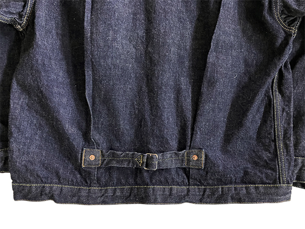 このアクションプリーツこそが機能性が求められるワークウエアの象徴で、腰に付いたシンチバックなど機能美と呼ぶにふさわしいディテールがいまでもデニムフリークを虜にしています。