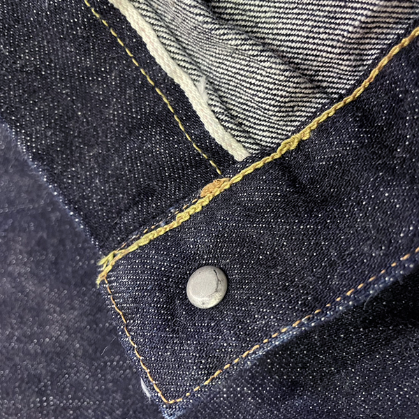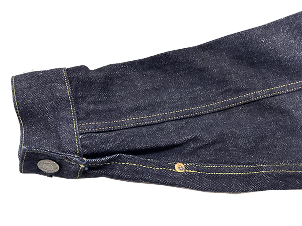 あわせが逆の袖口、袖のリベット補強なども見逃せないディテールです。