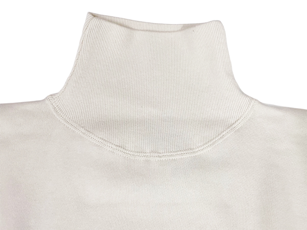 ■1920年代頃までフットボール競技で着用されていたハイネックセーター。ウールで作られたその素材を着まわしやすく、汗をかいても吸水性の高いコットン生地で代用が始まったのが、1930年代のハイネックスウェットシャツです。