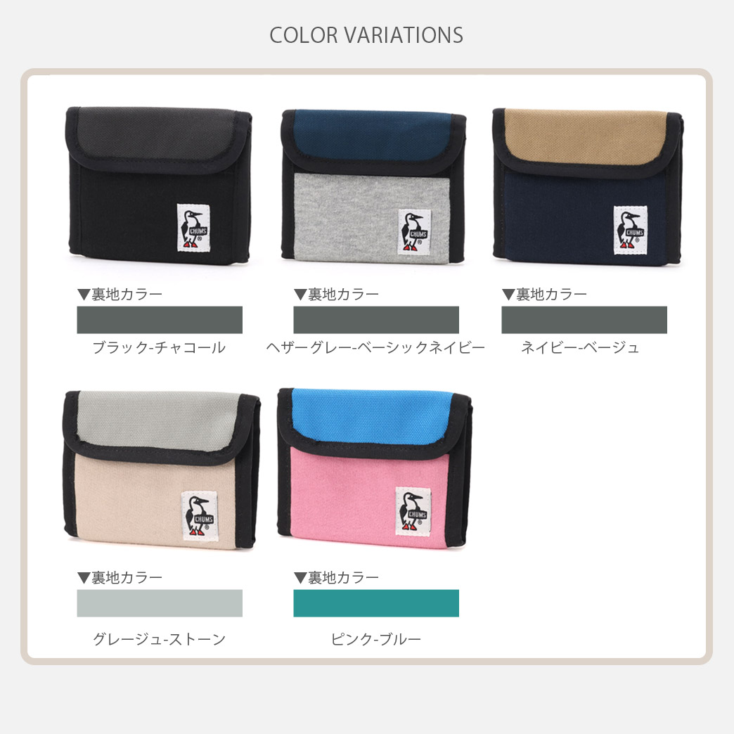 ![]() CHUMS正規販売店 当店はチャムス CHUMS の正規販売店です。 正規取扱店ならではの安心感とともに、信頼できる品質をお届けします。 水や汚れに強い。アウトドアでも安心して使えるCHUMS定番ウォレット カジュアルなスウェット素材と耐久性の高いナイロン素材を組み合わせた、CHUMS定番のスウェットナイロンシリーズの財布 。 デイリー使いはもちろん、フェスやアウトドアでも扱いやすい実用性を備えています。 スウェット生地の表面には、「Asahi Guard E-SERIES」加工 を採用。 撥水・撥油・防汚性能を備えており、急な雨や汚れが気になるシーンでも安心して使用できます。 ■耐久性と使いやすさを両立した素材 柔らかなスウェット素材をベースに、 負荷がかかりやすい部分には耐久性の高いナイロン素材 を使用。 軽量で扱いやすく、長く使いやすい設計です。 ■コンパクトでもしっかり収納