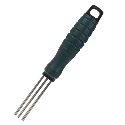 弾力のある細い金属ブラシが雑草やゴミを掻き出します。