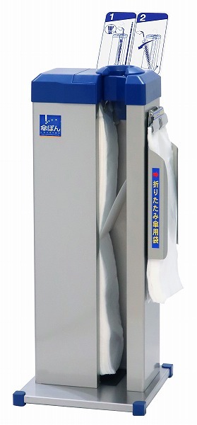 2,000枚の長傘専用かさ袋、600枚の折りたたみ傘専用かさ袋が収納できる大容量の傘ぽんスタンダードタイプです。