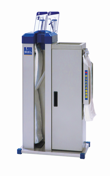 傘ぽんとダストボックスが一緒になったタイプで、市販のゴミ袋をセットできます。
