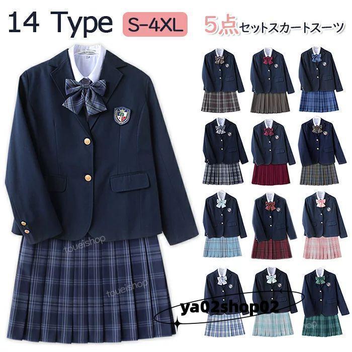 卒業式 スーツ 女の子 大きいサイズ 中学生 高校生 5点セット スカートスーツ 女子制服 学生服 女子高生 フォーマルスーツ チェック柄 プリーツスカート