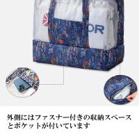 【収納場所が豊富】荷物を入れるポケットとファスナー付き収納スペースが豊富で持ち物が整理しやすいバッグです。 底部にはシューズやサンダルが入る場所が確保してあります。
