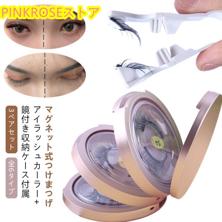 ミラー つけまつげ 3D 磁石 マグネット式 ボリューム ナチュラル 接着剤不要 繰り返し使える アイラッシュ 磁石まつ毛 ケース 付き 収納