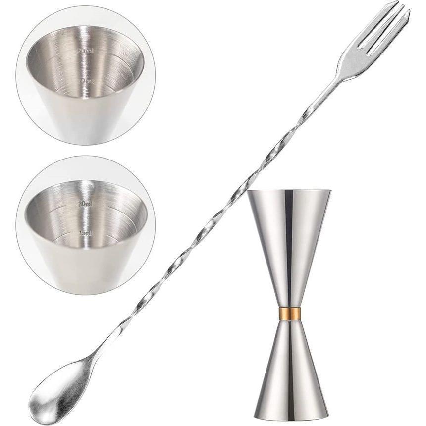 「バーテンダーセット」目盛り付き30ml/45mlジガーカップx 1、30cmバースプーン×1。プロのバーテンダーでも一般人でも、最もベースなバーテンダーツールセットです。