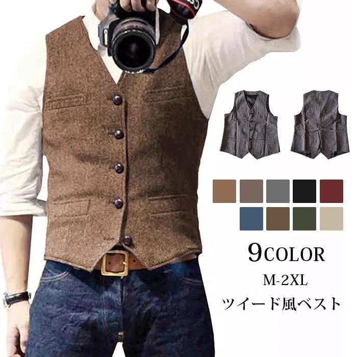 ベスト メンズ スーツ ジレ ツイード 暖かい スリム 細身 ビジネス 結婚式ベスト フォーマル 紳士 卒業式 男性用 おしゃれ アメカジ プレゼント
