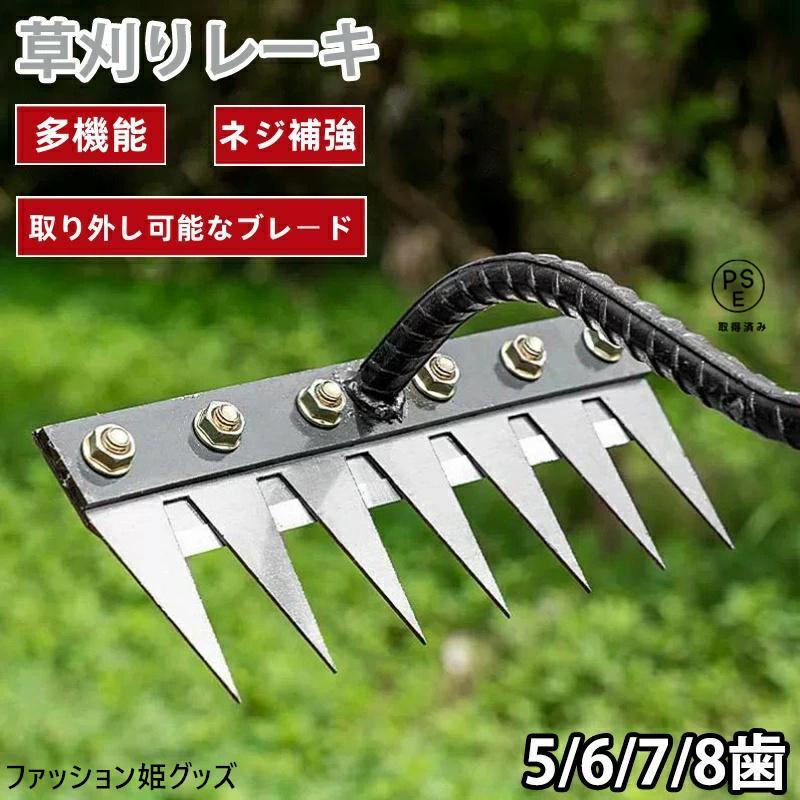 草刈りレーキ ガーデンレーキ 5/6/7/8歯 5/6/7/8本爪 熊手 草刈り 多用途 軽量 金属炭素鋼レーキ 多用途 草削り 雑草取り 雑草抜き 雑草対策 草取り道具