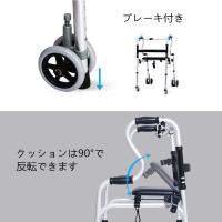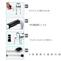 歩行器 ワンクリック折りたたみ可能 収納袋付き アルミ合金製 8段階高度調節可能(74-92cm) シャワーチェア機能付き 歩行補助器 ポータブル式 立ち上がり補助 多