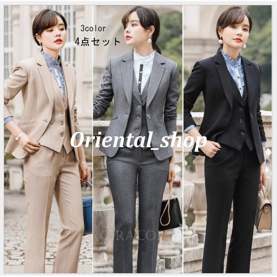 スーツレディース 3点セット ベスト付きスーツ ビジネススーツ セットアップスーツ スーツ 通勤 オフィス パンツスーツ 就活 面接 大きいサイズ