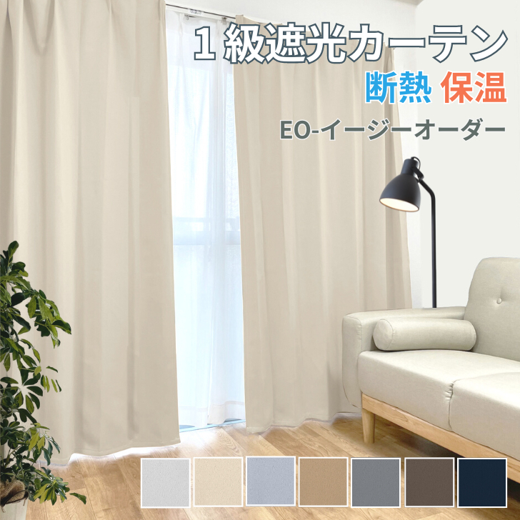 EO - ナチュラル 7色 1級遮光カーテン 遮熱 ワンプリーツ 幅100 or 200cm×丈80~250cm イージー オーダー
