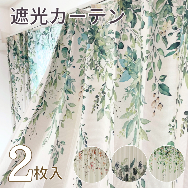 カーテン 遮光 ナチュラル 絵羽 選べる デザイン 遮光カーテン 幅100cm(2枚) 丈135 178 200cm ボタニカル 爽やか