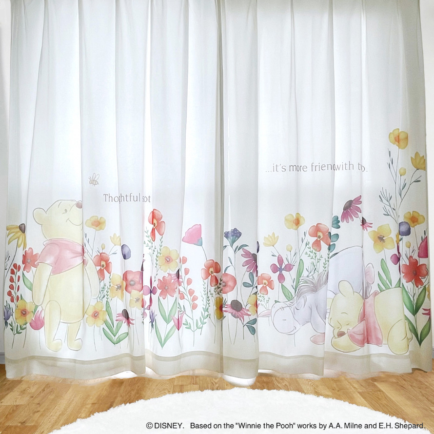 レースカーテン ディズニー disney くまのプーさん フラワー 遮熱 保温 UVカット見えにくいレースカーテン 幅100cm(2枚) 丈133cm