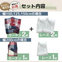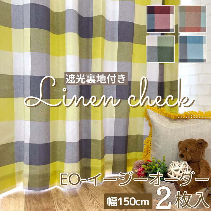 カーテン オーダーカーテン 遮光 EO-遮光 裏地付 リネン調 ナチュラル チェック カーテン& レースカーテンセット 幅150 cm×丈80~250cm イージー オーダー