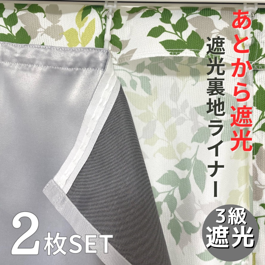 カーテン ライナー 取付簡単 あとから 遮光 裏地ライナー 2枚入 幅100cm×丈110 135 178 200 cmカーテン対応サイズ 2枚組