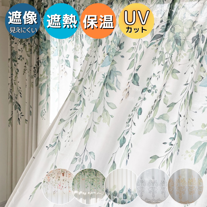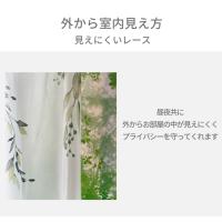 レースカーテン 断熱 保温 見えにくい UVカット ナチュラルなリーフ 絵羽 デザイン レースカーテン 幅100cm(2枚) 丈133 176 198cm
