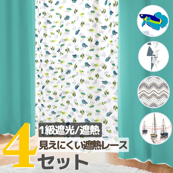 | 無地カーテンにデザイン性のあるレースカーテンをコーディネートするとお部屋のおしゃれ度がグッと上がります。 熱帯魚デザインのさかな柄/モダンな北欧デザインで人気の三角柄/ハワイアンテイストに合うヨット柄/ブラウンで構成されたおしゃれなエスニック柄。 プリント柄のレースカーテンは窓辺に吊るすと光を受けて淡い印象になるので、色柄の鮮やかなものでも派手すぎることはありません。また、お天気で印象が変わるのも楽しめます。 |