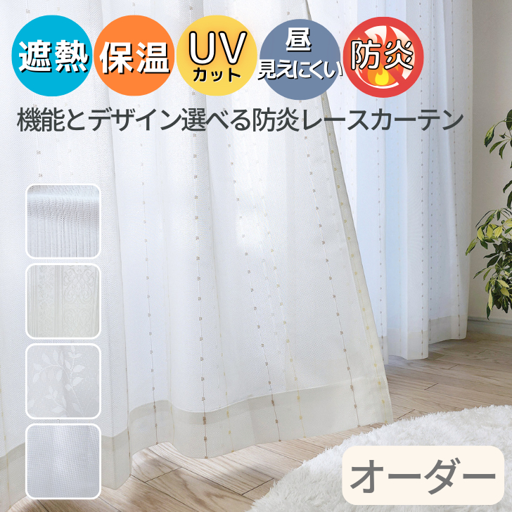 オーダー レースカーテン 防炎 昼見えにくい 遮熱 保温 UVカット 選べる 昼透けにくい 防炎レースカーテン 幅200cm 1枚 unv テイジン 花粉 ダニ od
